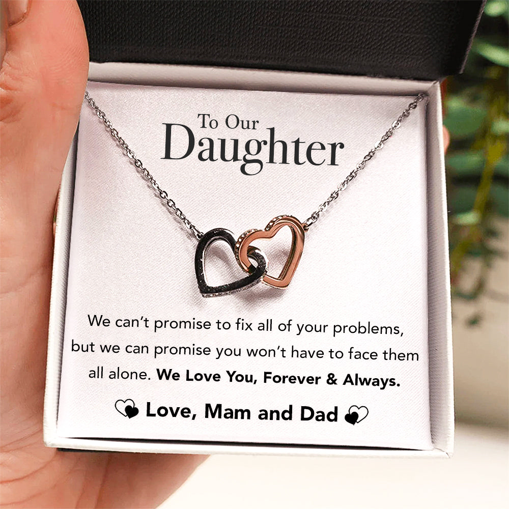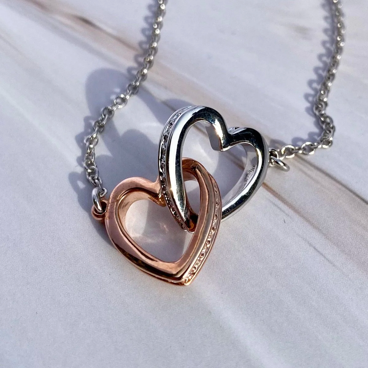 Our Sterling Silver Interlocking Hearts Necklace is beautifully crafted to symbolize the love and unbreakable bond between mother and daughter. Made from high-quality sterling silver, it ensures a lifetime of wear without tarnish or skin irritation. Accompanied by a keepsake poem card, it provides space for a personal message, adding a heartfelt touch that turns a simple necklace into a cherished memory. Plus, it's part of a family-run, UK-crafted brand with a lifetime color guarantee.
